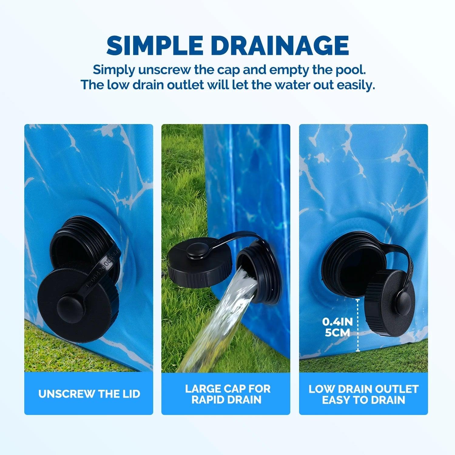 - No Hassle Setup: Unfold and fill with water; the pool inflates as it fills.